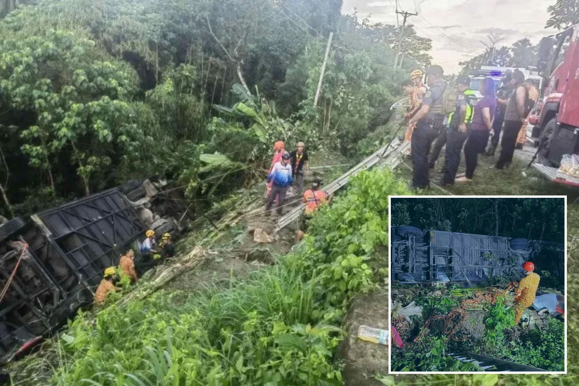 Al menos seis personas murieron y de 20 resultaron heridas después de que un autobús cayera 30 pies por un barranco, y el conductor supuestamente se quedó dormido al volante.