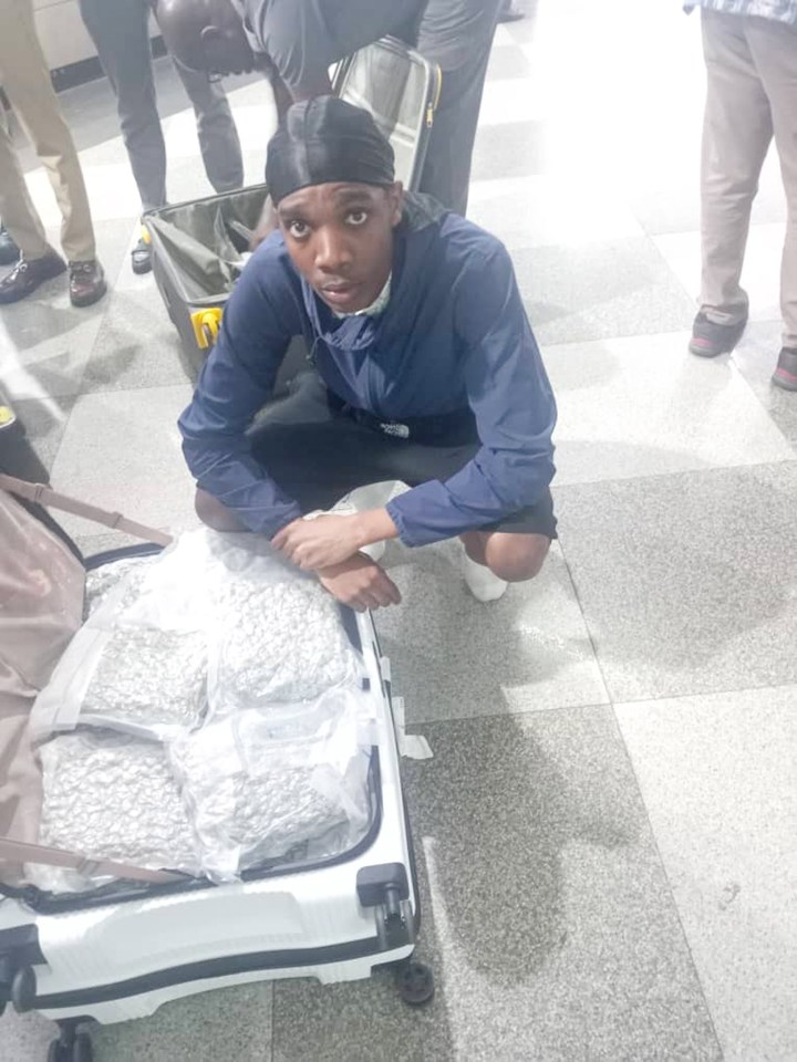 Tihaise Darlin Elisha, 19, pictured with one of the suitcases carrying cannabisCredit: Newsflash