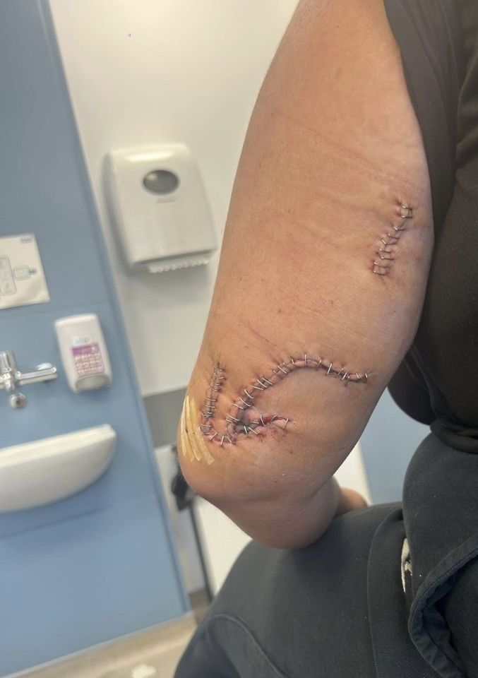 Cuando Samantha llegó al Hospital Marina Baixa, los médicos tuvieron que usar productos básicos y puntadas para sellar las heridas abiertas.