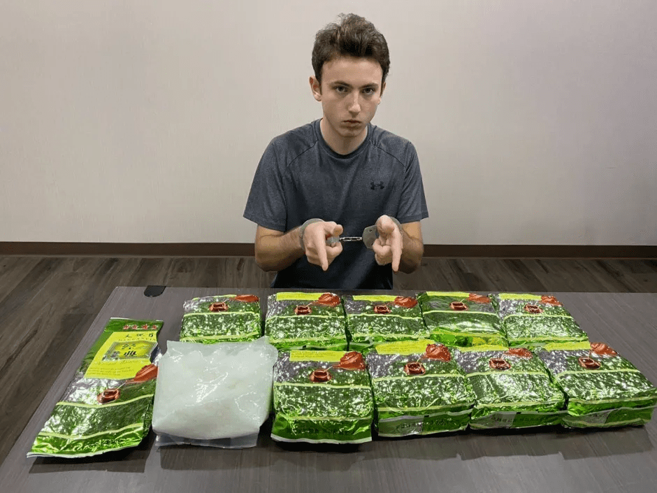 El británico insistió: «No sé qué es», pero fue arrestado después de que los oficiales abrieron las bolsas y realizaron una prueba para demostrar que la droga era metanfetamina.