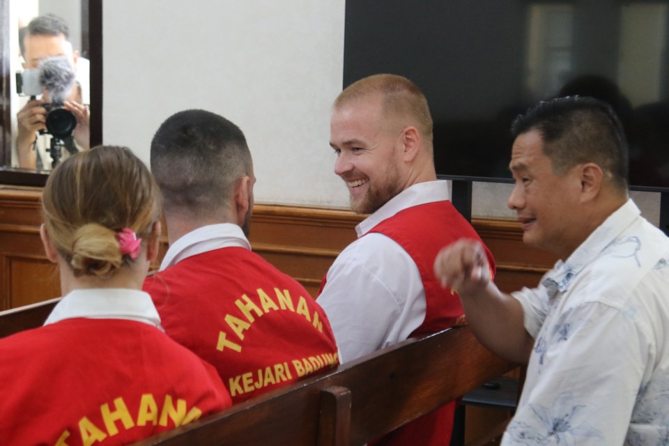 Collyer y Stocker están siendo juzgados juntos y flotan por separado, aunque el trío apareció juntos en el Tribunal Central de Denpasar hoy.