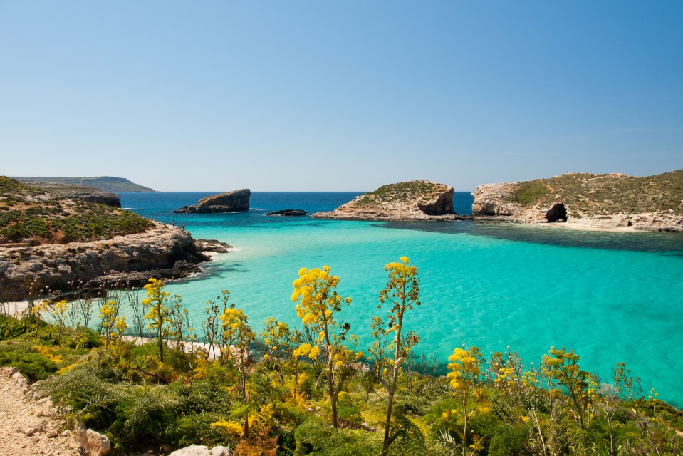 Malta’s Blue Lagoon es una impresionante joya turquesa en Comino, que atrae a miles anualmente.