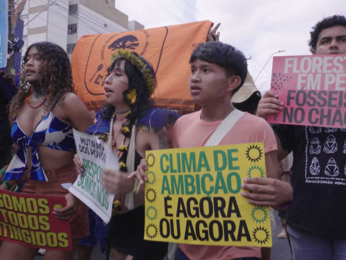 MARÍA INÉS TARACENA: Estamos en las calles de Belém, donde se celebra la cumbre climática de la ONU. Estamos a la mitad de las negociaciones del CO30. Es sábado. Miles de personas han salido a las calles exigiendo una acción climática urgente. Hablamos con varios de ellos.