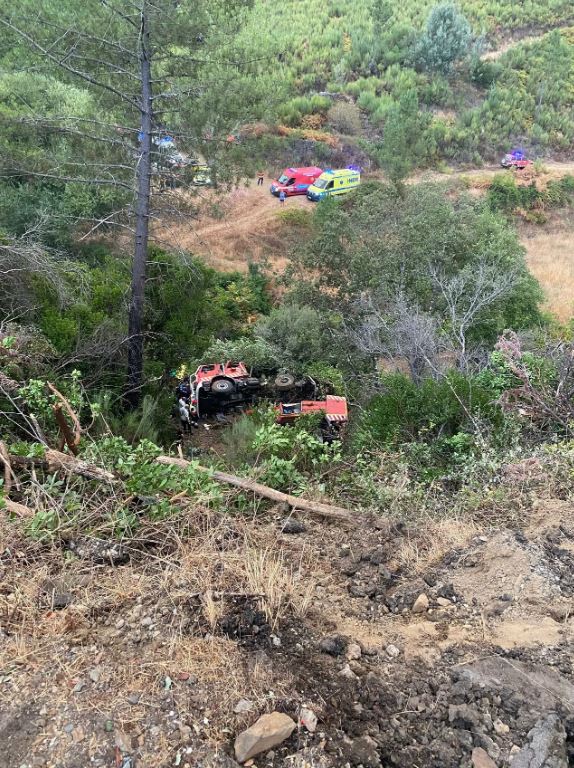 Dos bomberos fueron asesinados y tres fueron luchando por la vida después de que su camión se deslizó fuera de la carretera y se sumergió en un barranco mientras estaba en una llamada de emergencia en Portugal.