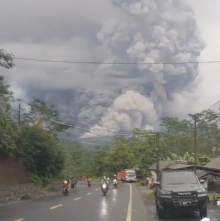 La primera explosión del monte Semeru se produjo a las 4:10 am, hora de Indonesia occidental.