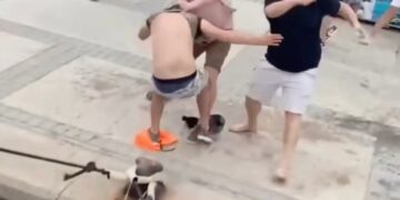 Momento impactante La pelea de la piscina para la silla estalle en el Hotel Ibiza con turista atacado en la cabeza y golpeado en agua