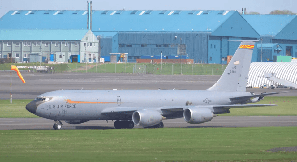 Footage shows one of the four KC-135 Stratotankers landing at Glasgow Prestwick Airport on MondayCredit: YouTube/Daniel Sander