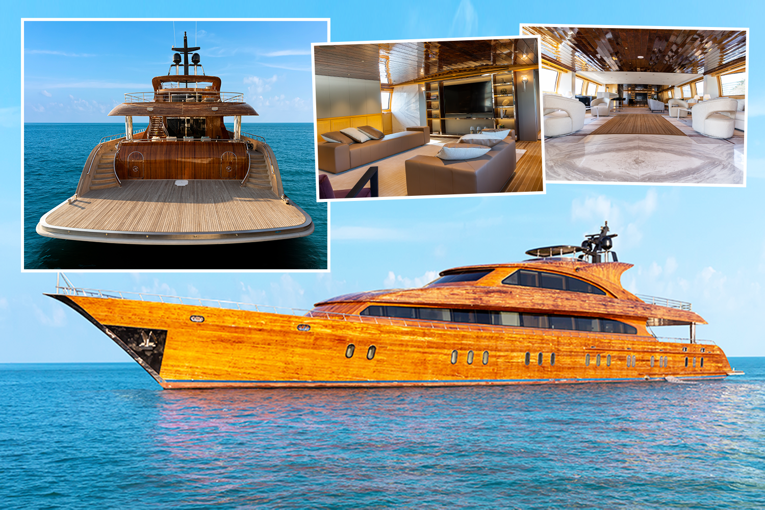 ESTE es el superyate totalmente de madera grande del mundo, de 160 pies de largo, hecho enteramente de teca de alto brillo y completo con una mega sala de cine.