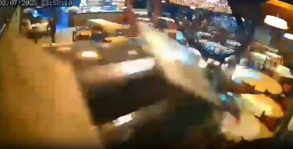 El momento impactante, un conductor ebrio rompió a través de la pared de un restaurante después de ser expulsadoCrédito: Viral Press