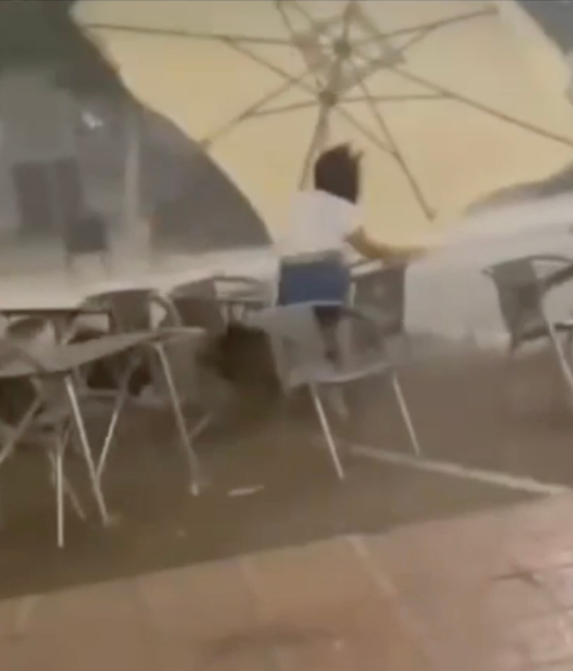 Este es el momento aterrador, un tornado de repente barrió las mesas y sillas en un café turístico en España durante «Satan’s Storm».