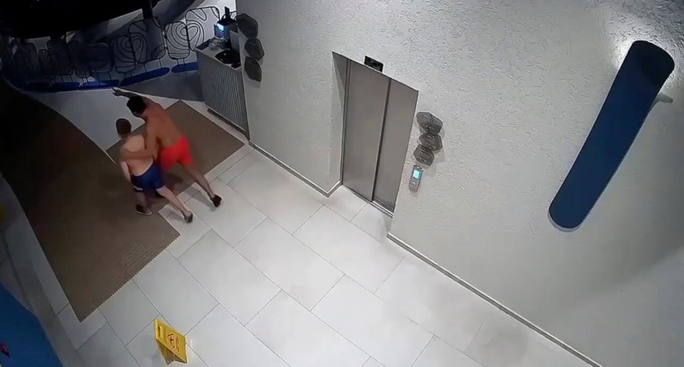 Las cámaras de seguridad atraparon a la pareja a escabullirse y divertirse en el desierto piscina Complejo en Rusia la semana pasada.