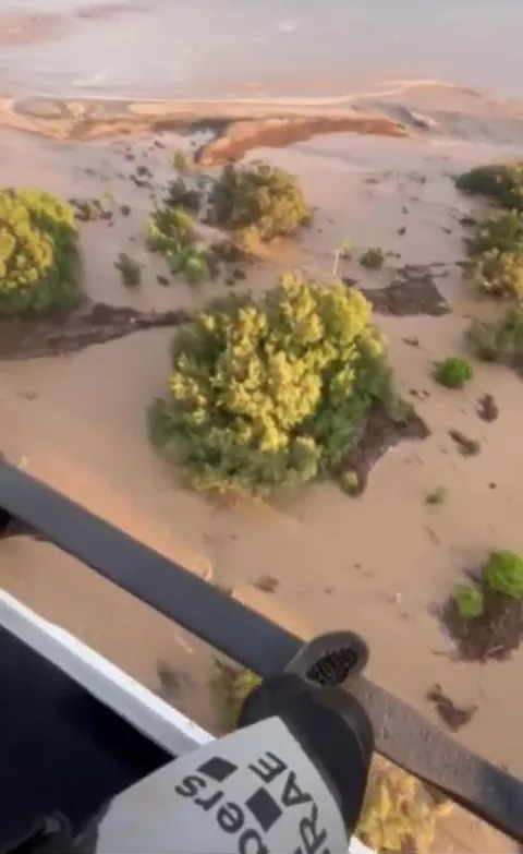Las imágenes muestran a los rescatistas en un helicóptero buscando a las personas desaparecidas sobre el río.