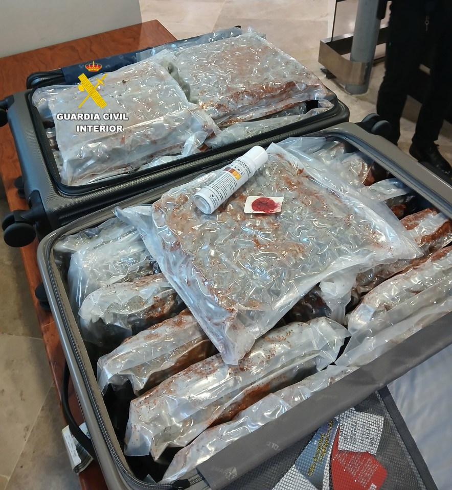 Confirmando los últimos arrestos, un portavoz de la Guardia Civil en Valencia dijo: “La Guardia Civil y la Agencia de Impuestos han arrestado a dos personas en un vuelo de Francia por llevar de 33 kilogramos de marihuana llena de aspirador en sus maletas.