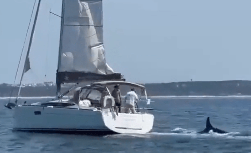 Las imágenes escalofriantes muestran en el momento en que las cuatro ballenas asesinas lanzaron un ataque contra el velero cerca de la playa de Fonte da Telha.