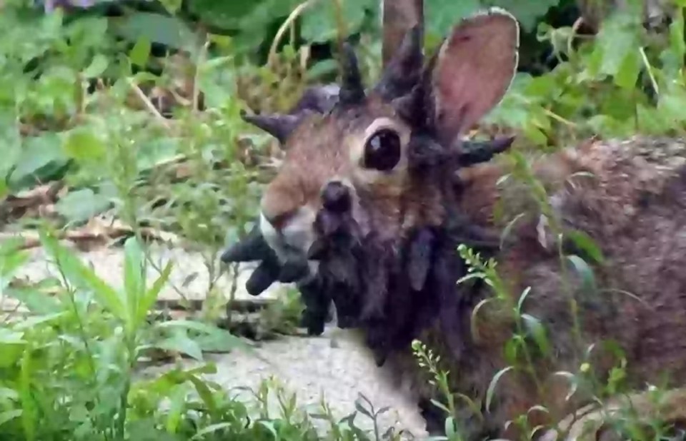 Se cree que la enfermedad del estilo de la película de terror inspiró el jackalope mítico, que es un conejo con cuernos que sobresalen de su cabeza.