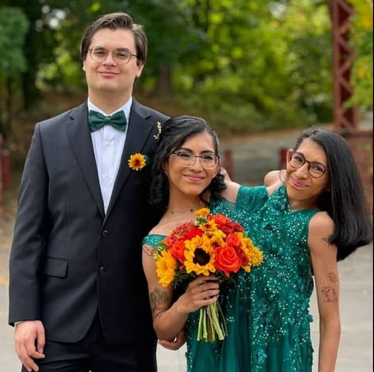 Los gemelos, Carmen y Lupita Andrade y Daniel McCormack, posan juntos.