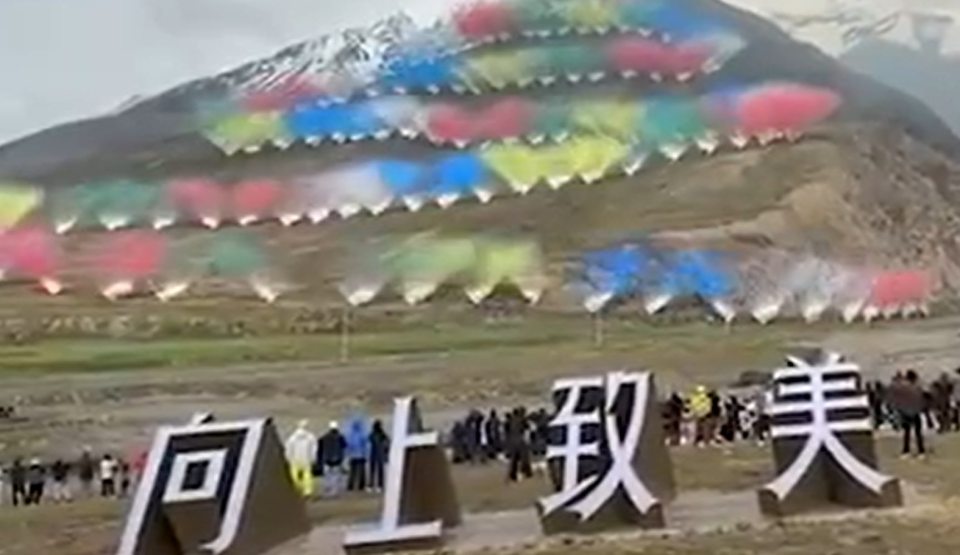 Titulada «Dragón ascendente» la obra de arte serpenteada por el camino de la montaña desde el pueblo de Relong, que se denomina «la ciudad natal del Monte Everest».
