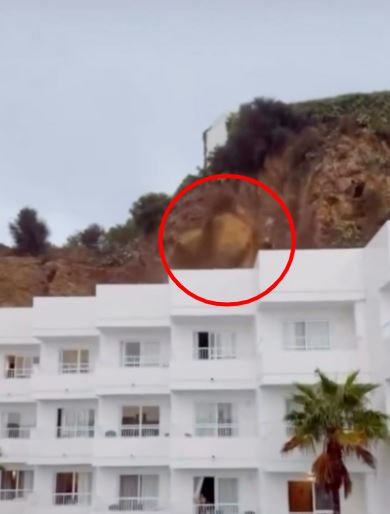 Este es el momento en que los turistas aterrorizados gritan mientras las rocas y el barro se estrellan contra un hotel Ibiza, dejando a tres personas heridas y obligando a cientos de huir.