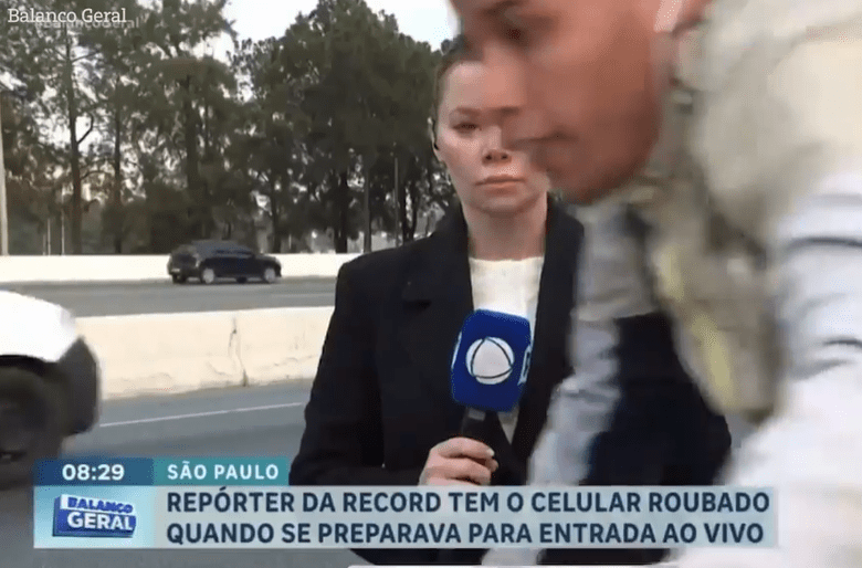 La periodista brasileña Clara Nery se estaba preparando para aparecer en la cámara cuando un ladrón de teléfonos barrió.