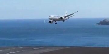 Un usuario de las redes sociales que comenta sobre el enfoque y el aterrizaje del avión dijo hoy: «Esto es una locura. Ya tengo un nudo en la parte inferior del cuello solo por mirar».