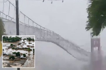 Momento en que el tifón hace sonar el puente como si estuviera hecho de papel y la tormenta mata a 8 personas