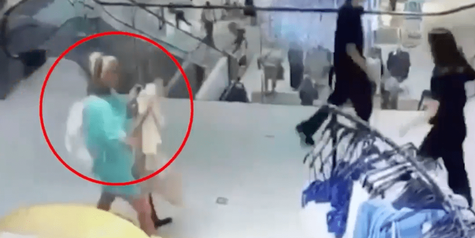 Este es el momento en que Brit Comic Cerys Nelmes supuestamente salió de una tienda de Zara en Estambul con ropa de £ 110 en ropa rellena en su mochila.