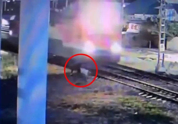 Con su cuerpo cubierto sobre las vías, un heroico espectador salta a la acción y corre directamente sobre las vías con el tren a solo metros de distancia.