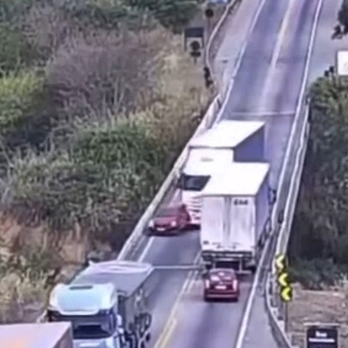 Las imágenes de CCTV de terror muestran que el HGV se desvía en el carril opuesto a una velocidad increíble el jueves por la tarde en Brasil.