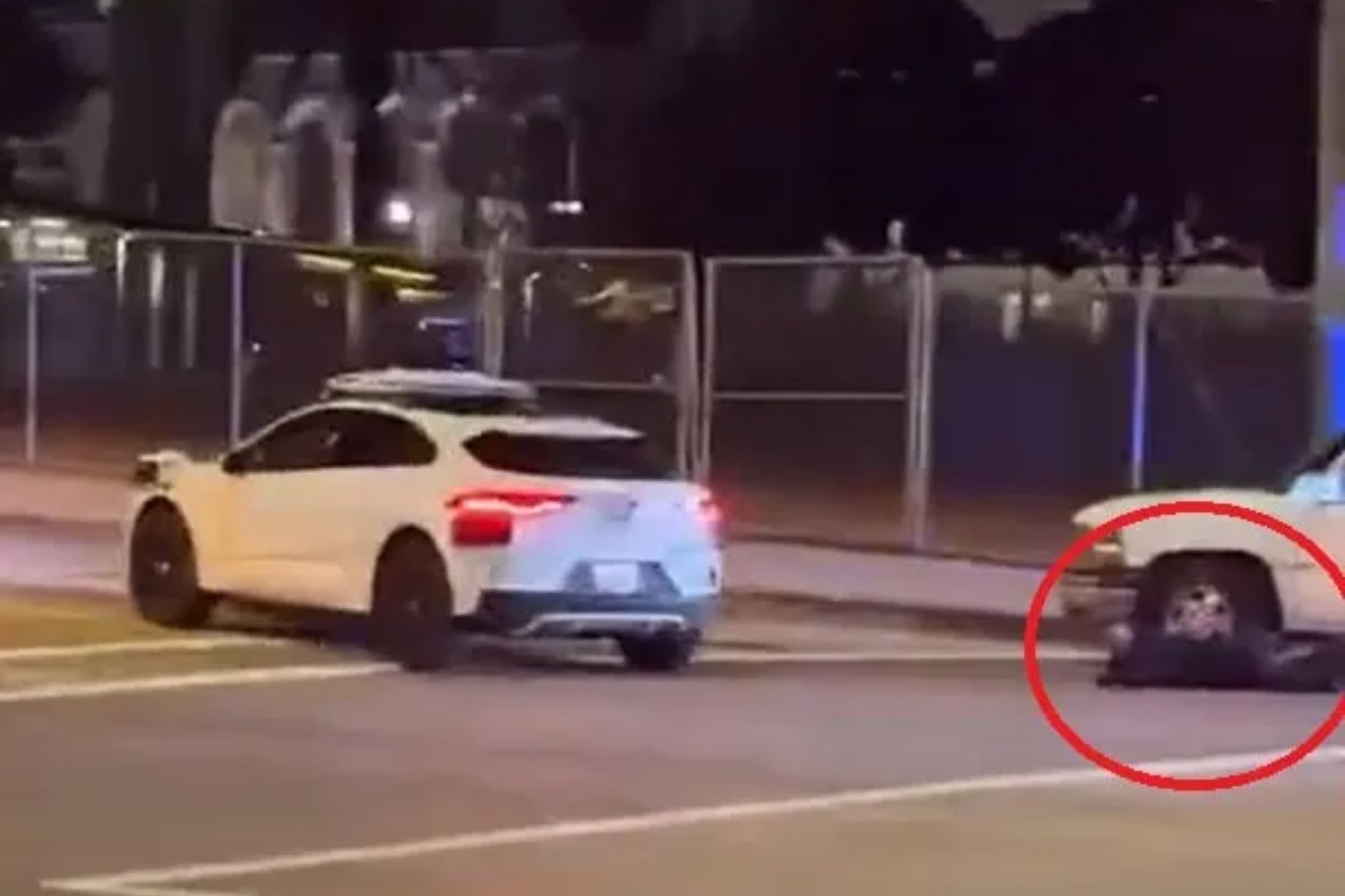 La gente que filma el incidente en un vehículo diferente exclama: «¿Qué carajo está haciendo ese Waymo?».
