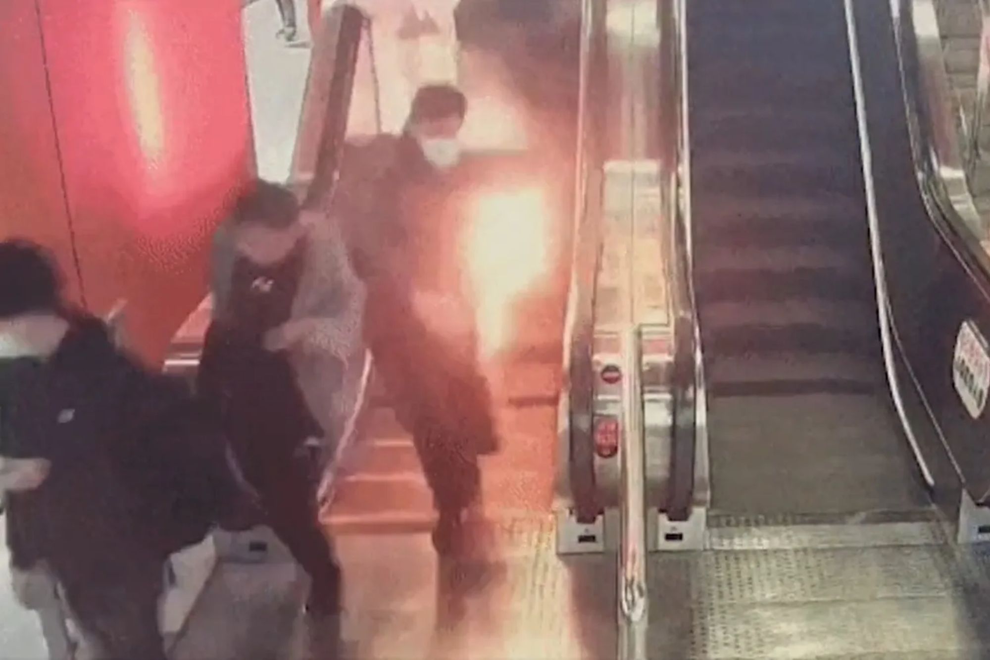 Las horribles escenas se desarrollaron en una estación de metro en China después de que un cargador portátil se encendiera dentro de la chaqueta de un viajero mientras bajaba por una escalera mecánica.