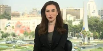 Este es el momento aterrador que un ataque aéreo israelí golpea a un cuartel general militar sirio en la televisión en vivo, con un periodista de noticias capturado huyendo en pánico.
