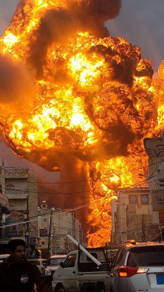 Este es el momento dramático que estalló una bola de fuego colosal cerca del palacio presidencial de Yemen en ataques de misiles israelíes contra los hutíes.