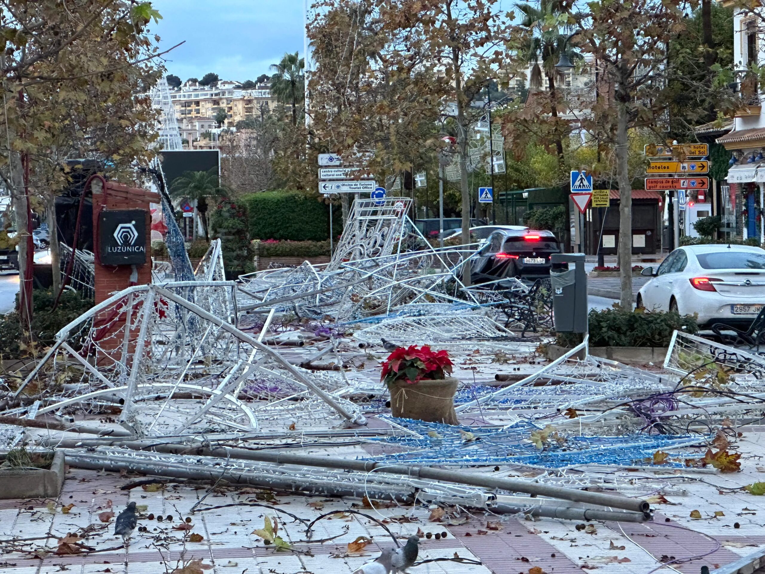 El tornado causó caos en las primeras horas esta mañana en el centro de La Cala de Mijas, en la Costa del Sol.