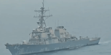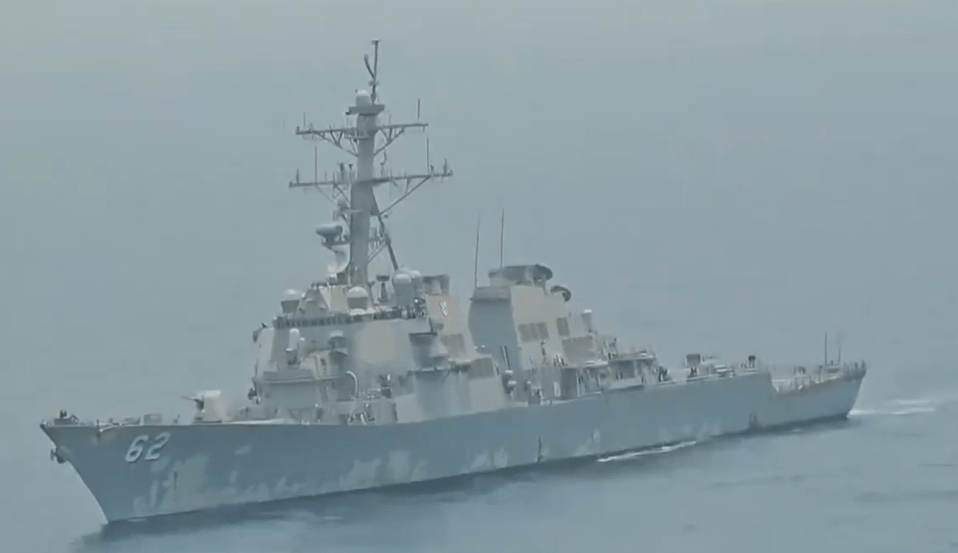 Las imágenes muestran al piloto que intenta ordenar al destructor que «cambie de rumbo» sin éxito.