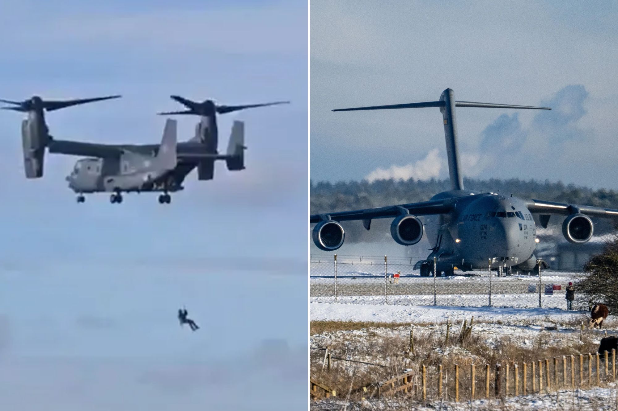 Las fuerzas especiales estadounidenses fueron capturadas entrenándose en el Reino Unido después de que Estados Unidos puso en marcha su enorme máquina de guerra y acumuló una flota de aviones militares estadounidenses fuertemente armados en toda Europa.