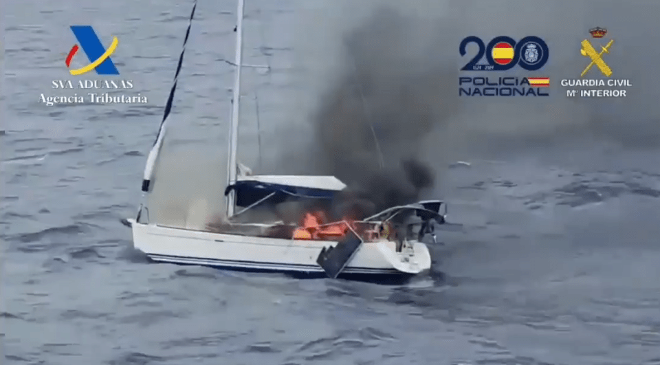 Este es el momento dramático que los traficantes de drogas establecen su propio yate para destruir su gigantesco transporte de cocaína.