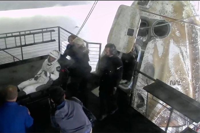 Los cuatro miembros de la tripulación fueron retirados cuidadosamente de la nave espacial menos de una hora después.