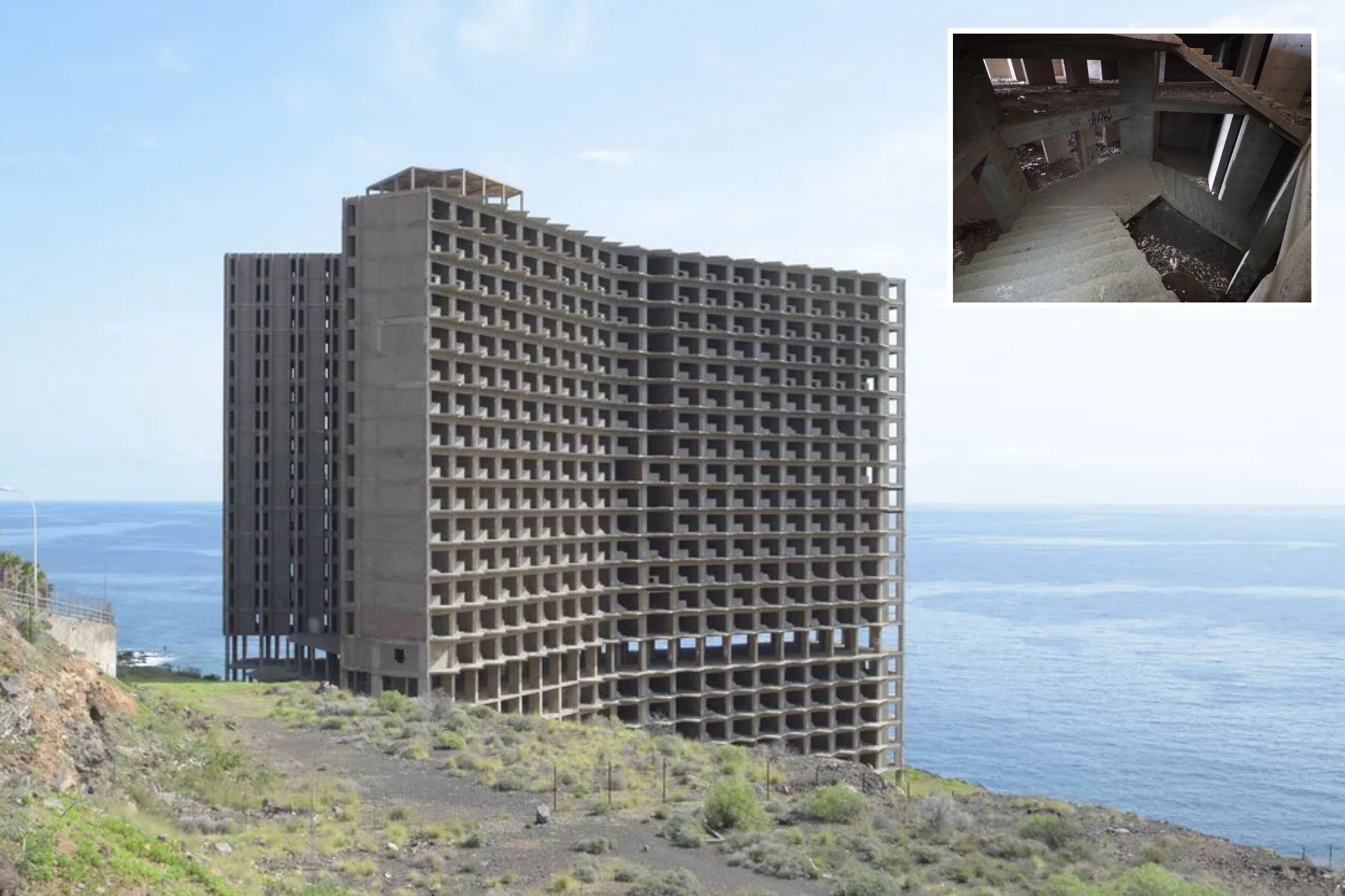 El hotel, conocido como la monstruosidad de Añaza, tiene ascensores y ventanas abiertos y ha estado vacío durante de 50 años.