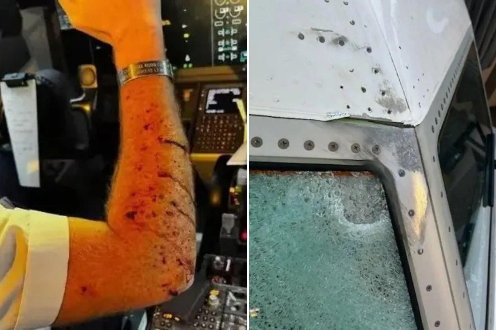 Imágenes gráficas mostraron el brazo empapado de sangre del piloto golpeado y magullado por los fragmentos de vidrio.