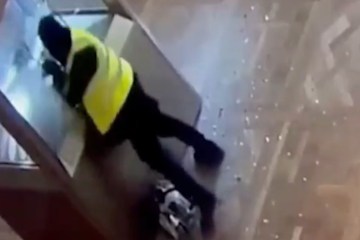 Las imágenes capturaron a ambos ladrones trabajando juntos para abrirse camino hacia las cajas de la clase, robando las valiosas piezas de joyería antes de huir de la escena.