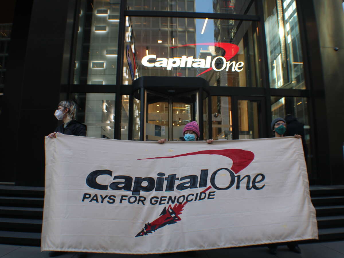Esta acción se produce días antes de que expire un préstamo de 545 millones de dólares de un consorcio de seis bancos (incluidos 90 millones de dólares de Capital One) a Elbit Systems, el mayor fabricante de armas de Israel. Como parte de una semana global de acción convocada por el movimiento Boicot, Desinversión y Sanciones (BDS) para “intensificar la campaña BDS contra Elbit”, los organizadores planearon acciones en la ciudad de Nueva York, Boston y el área de Washington, DC dirigidas a Capital One bajo el sobrenombre de “Expulsar a Elbit”.