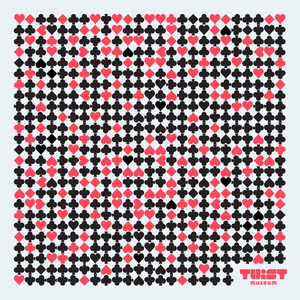 El rompecabezas complicado, proporcionado por Museo de giro representa una cuadrícula de copasdiamantes y clubes.