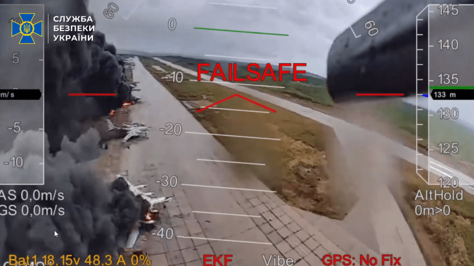 La agencia de espionaje de Ucrania que realizó el ataque, el SBU, empleó a 117 drones en la operación atrevida para atacar a los bombarderos estratégicos TU-95MS y TU-22M, y aviones de espía A-50.