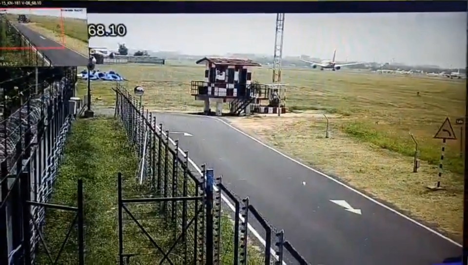 CCTV muestra el avión gravando a lo largo de la pista en AhmedabadCrédito: ViralPress